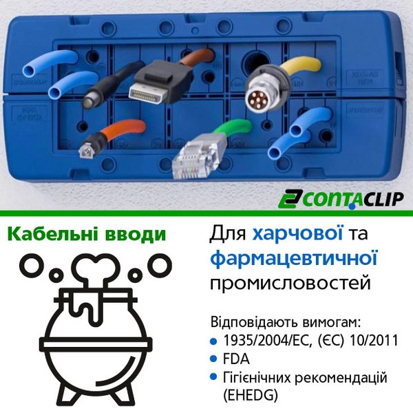 Рішення FDA для організації кабелів для харчової промисловості – гігієнічні кабельні вводи та втулки від CONTA-CLIP