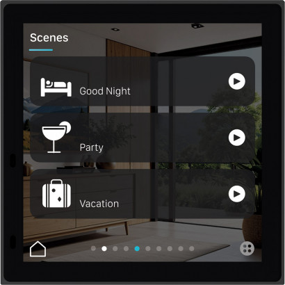 Кімнатний контролер iONprime CP 4 KNX розширює концепцію візуальним виміром. Його 4-дюймовий сенсорний екран забезпечує інтуїтивне керування та відображення до 48 функцій, від освітлення та клімату до керування сценами.