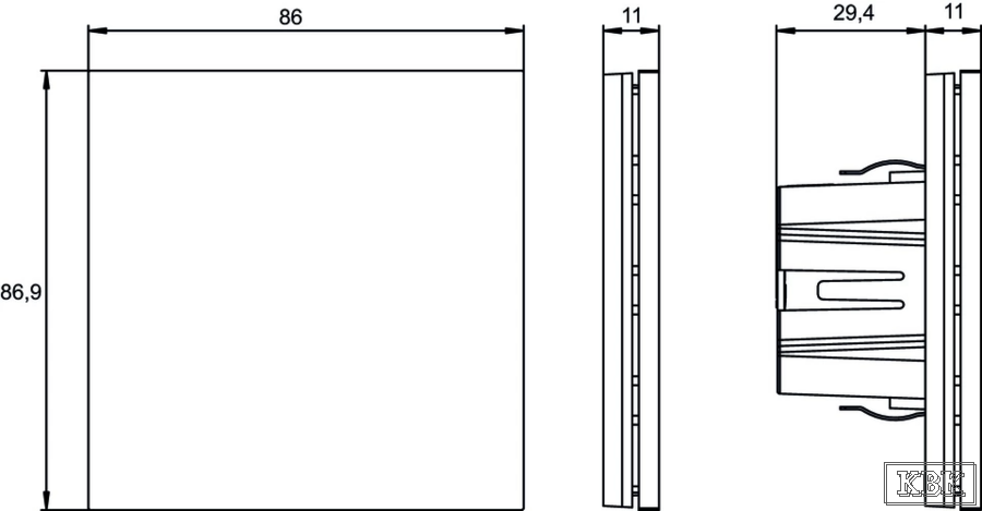 - Один базовий блок для всіх типів кнопкових панелей, кнопкові панелі доступні в 3 варіантах (1-, 2- та 4-сторонній) на вибір у 7 кольорах або матеріалах, мають чудовий елегантний вигляд та приємні на дотик, панелі, як окремі аксесуари, є обов'язковими.