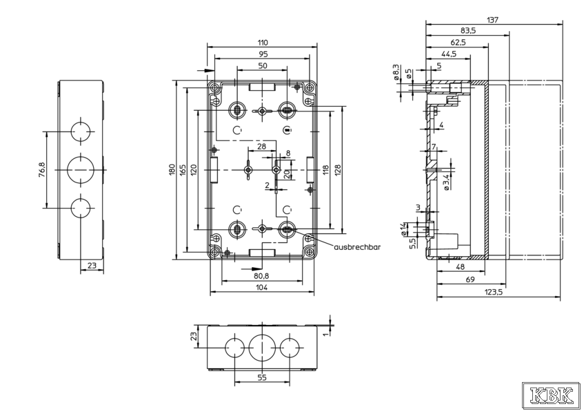 Коробка для монтажу електронних та електротехнічних виробів. Додаткове приладдя: монтажні пластини, рейки