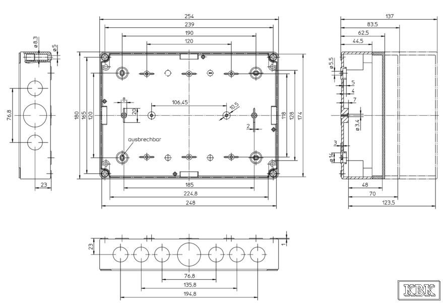 Коробка для монтажу електронних та електротехнічних виробів. Додаткове приладдя: монтажні пластини, рейки