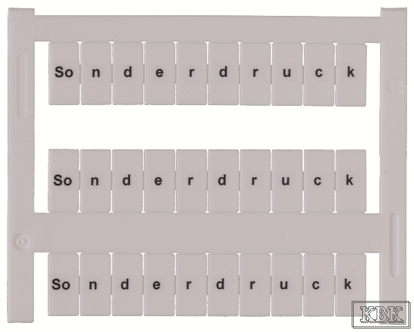 Порожня або з індивідуальним нанесенням. Стандартний колір: чорні символи на білих шильдиках, кольорові пластини поставляються порожніми.