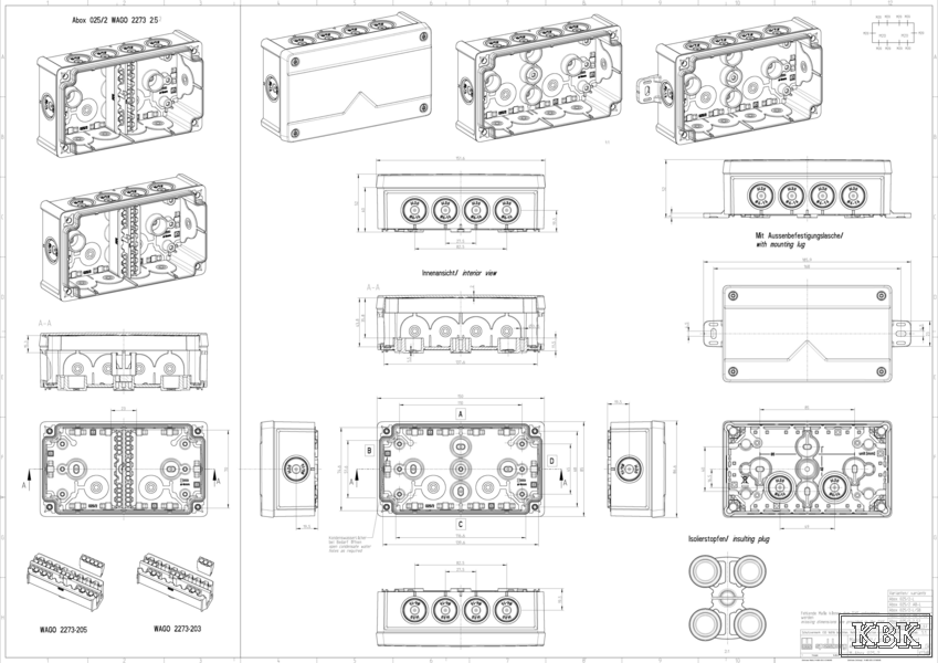 Розподільча коробка клас захисту IP66, номінальний переріз 2,5 мм², сертифікована VDE (DIN EN 60670-1/-22 (VDE 0606-1/-22)), DLG (стійкість до аміаку), самоущільнювальна, мембрани з м’яким входом, внутрішні точки кріплення.
